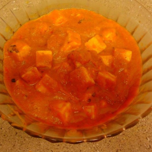 Tomatoes & Vegetables Cooked in a pressure Cooker, pureed & seasoned.
