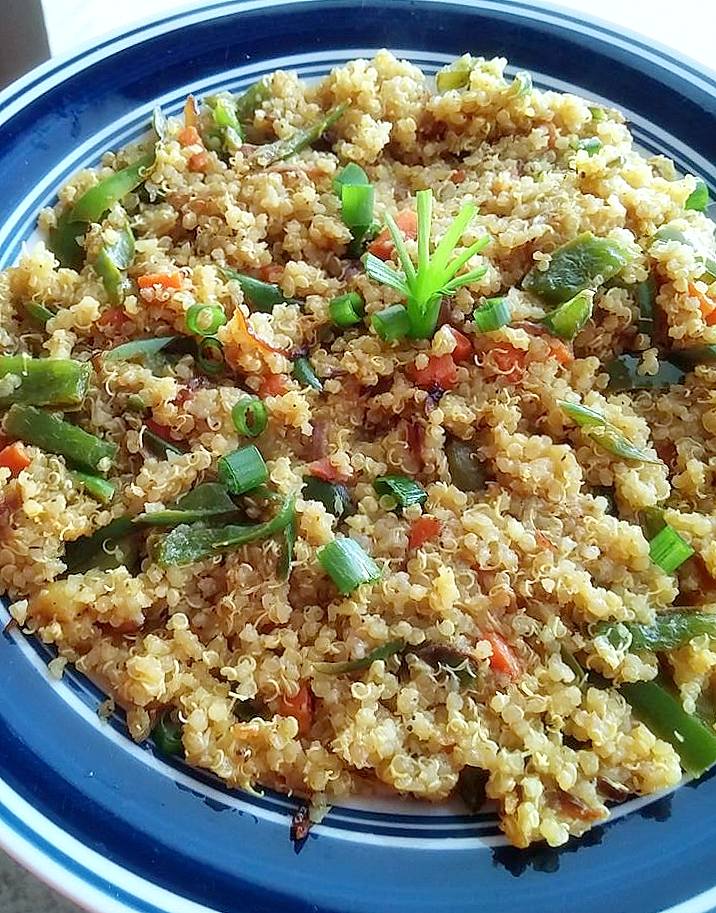 Quinoa Cooked with Vegetables & seasoned with Indian Flavor for a twist.