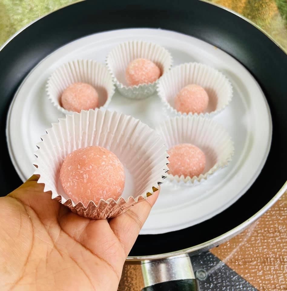 Laddoo, a traditional Indian sweet, is typically prepared to commemorate festivals and special occasions. Its preparation involves combining desiccated coconut with condensed milk to form desired shape, and fresh grated coconut can also be used as a substitute.