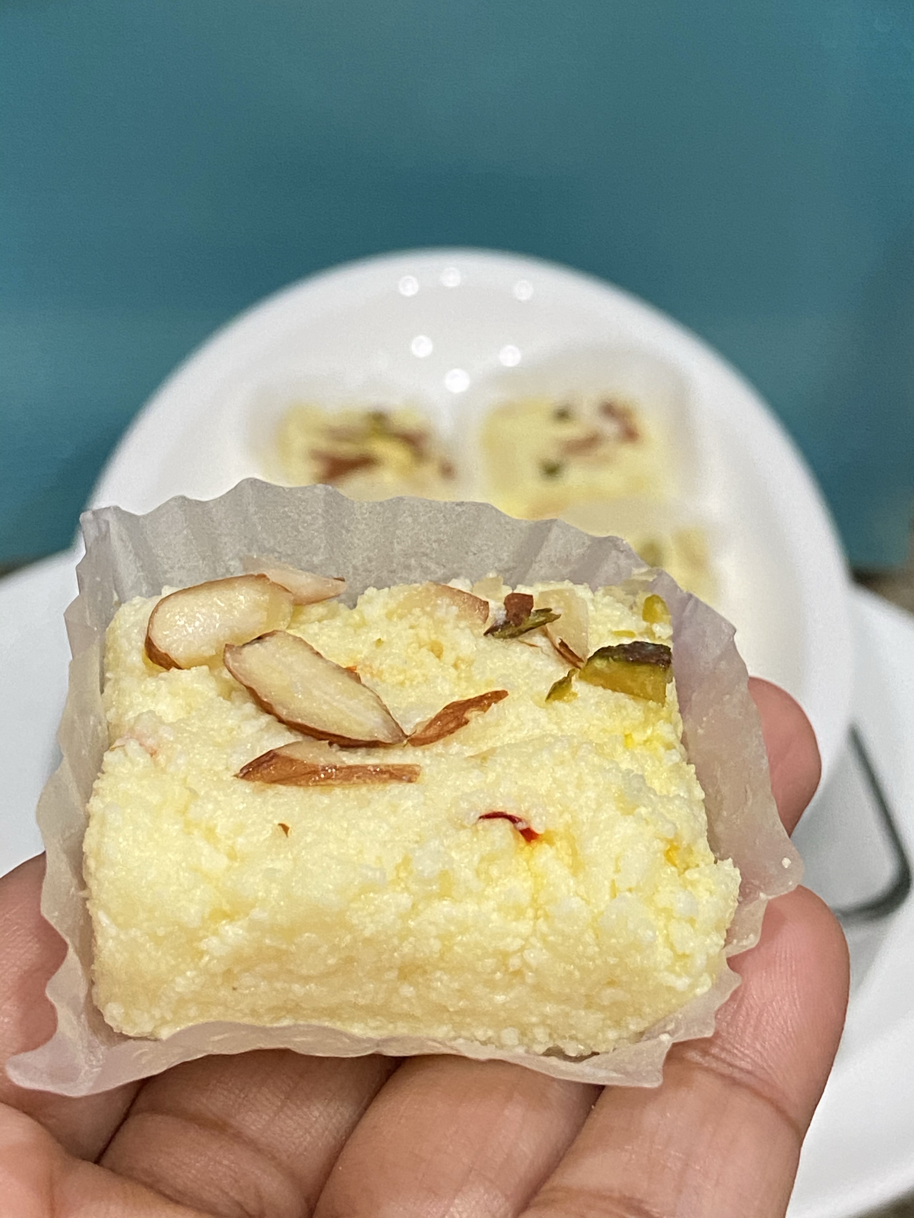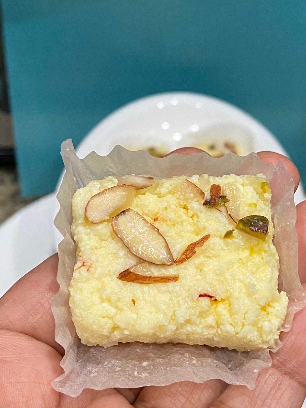 traditionally it is prepared by evaporating and solidifying the milk. later this thick milk is curdled, to which sugar is added and then cut into desired shapes.