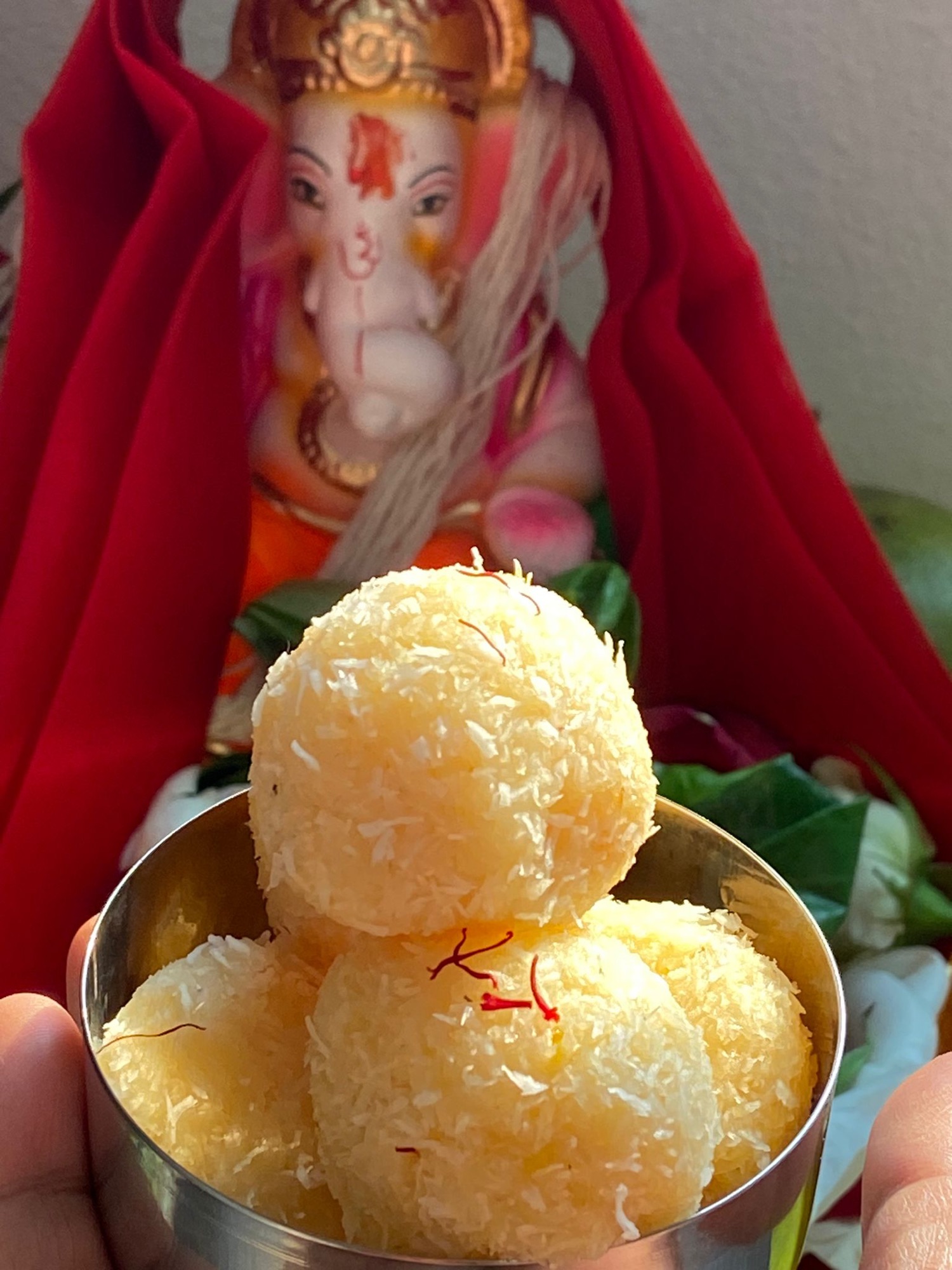 This year, I prepared Kesar Elaichi flavor Coconut Laddoo as an offering to Lord Ganesha.🎉
